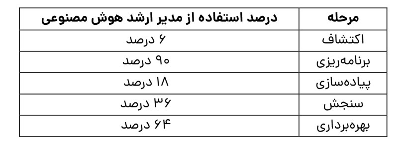 جدول 4. درصد سازمانهایی که مدیر ارشد هوش مصنوعی استخدام کردهاند: