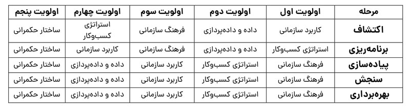 جدول 1. فرصتهای استراتژی کسبوکار بر اساس مراحل آمادگی برای هوش مصنوعی